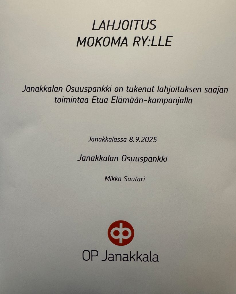 Saimme 8.9.2025 arvokkaan lahjoituksen Janakkalan Osuuspankilta